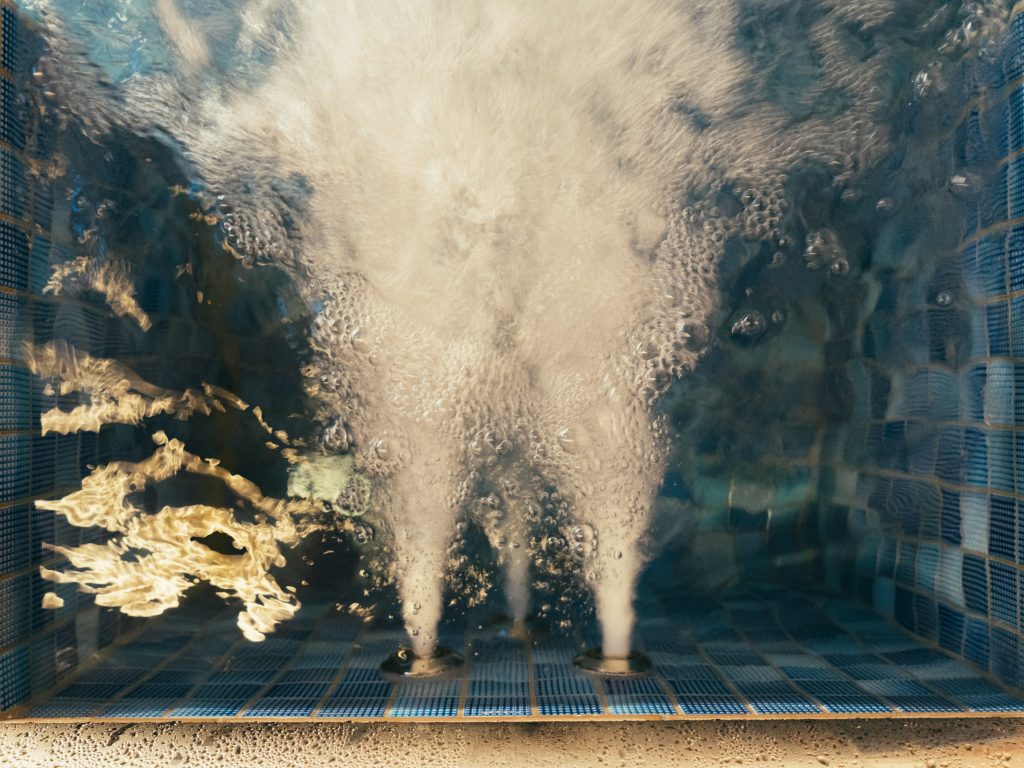透明なヤカンのため視覚的にも楽しめるのに加え、香りでもととのえるサウナ室に。