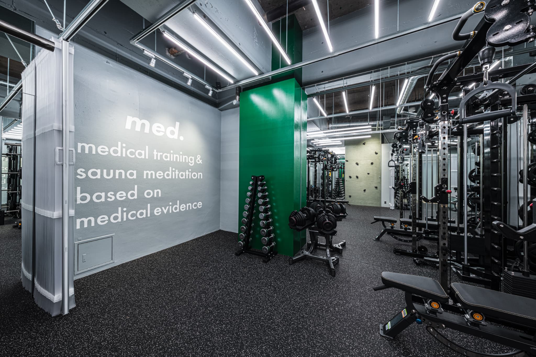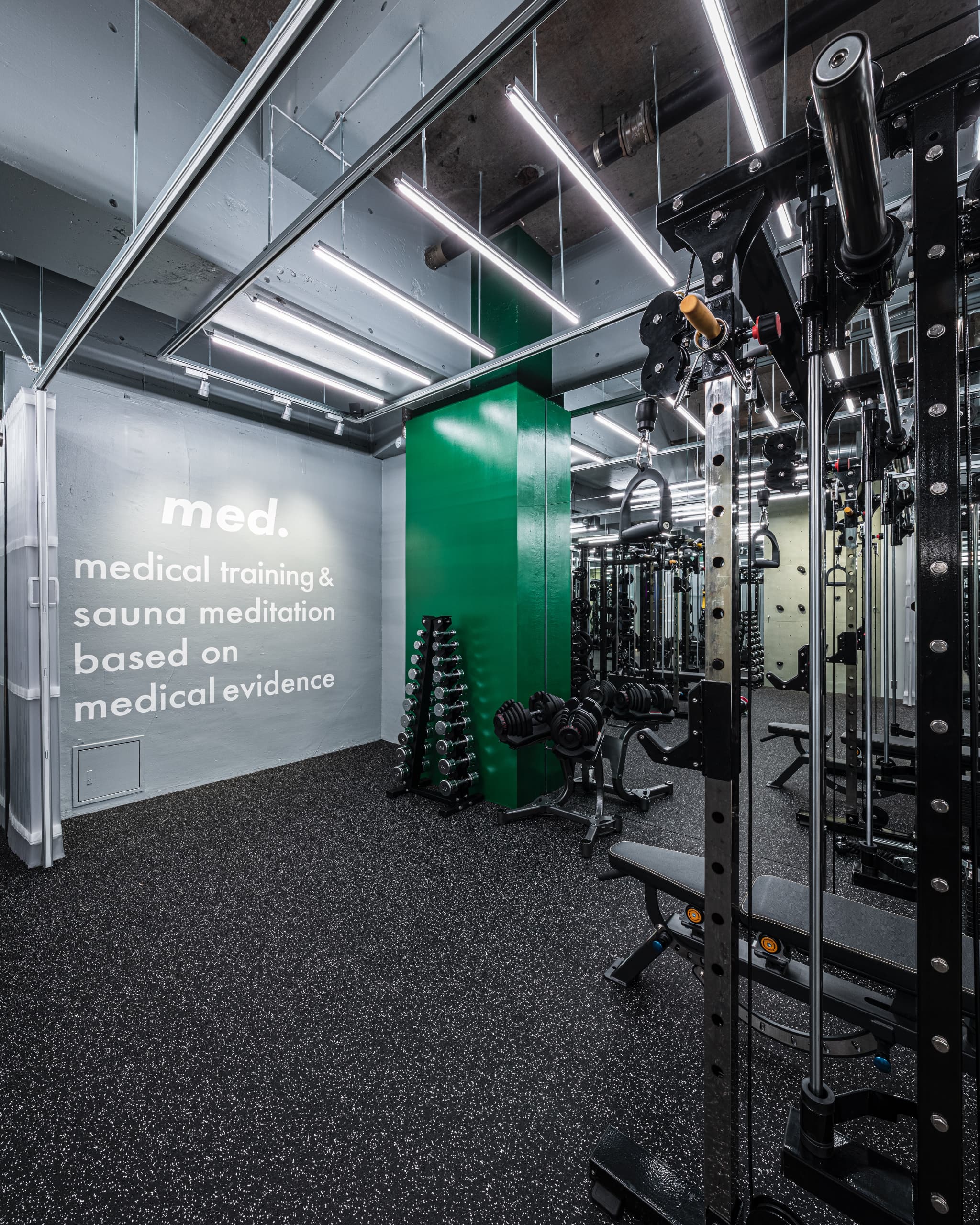 医学的根拠に基づいたメディカルパーソナルトレーニングジムを展開してきたMEDiGYMチームからご依頼を受け、コンディションに合わせてカラーと音楽を選択可能なカラーパーソナルジム&サウナをプロデュース。※カラーセラピスト監修、ロウリューが可能なカラーサウナは世界初
