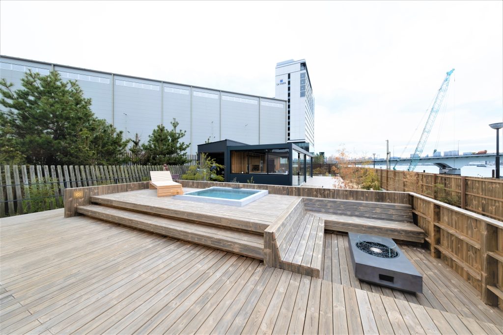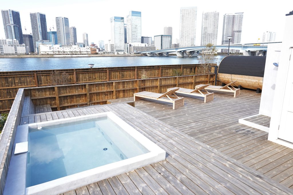 Conveniently located overlooking the city skyline, including cruise ships sailing in Tokyo Bay, Tokyo Tower, and Tokyo Sky Tree. It is an extraordinary space with a sense of openness where you can enjoy a full course meal supervised by a three-star Michelin chef, Finnish sauna and water bath, and more.